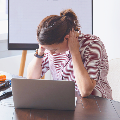 Beim Arbeiten wird dementsprechend der Kopf gesenkt oder eine krumme Sitzposition eingenommen. Infolgedessen wird die natürliche Ausrichtung der Wirbelsäule gestört. Schmerzhafte Verspannungen im Nacken- und Rückenbereich stehen schon bald auf der Tagesordnung. Diese können sich zu chronischen Krankheiten entwickeln.