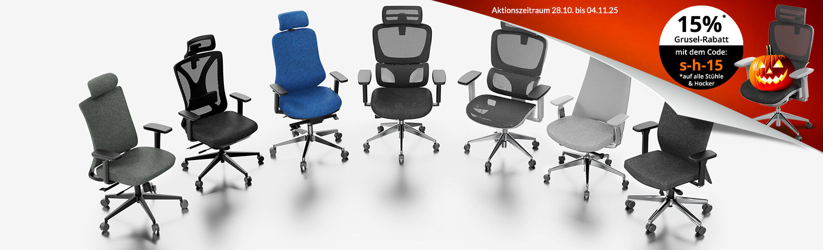 Nicht nur die Verstellmöglichkeiten sind wesentliche Kriterien, auch der Stuhlbezug ist für das persönliche Wohlfühlen wichtig. Alle unsere Stühle sind mit unempfindlichen Materialien bezogen und haben einen hohen Sitzkomfort - ob Vollpolsterbezug oder auch besonders atmungsaktiver Mesh-Bezug.