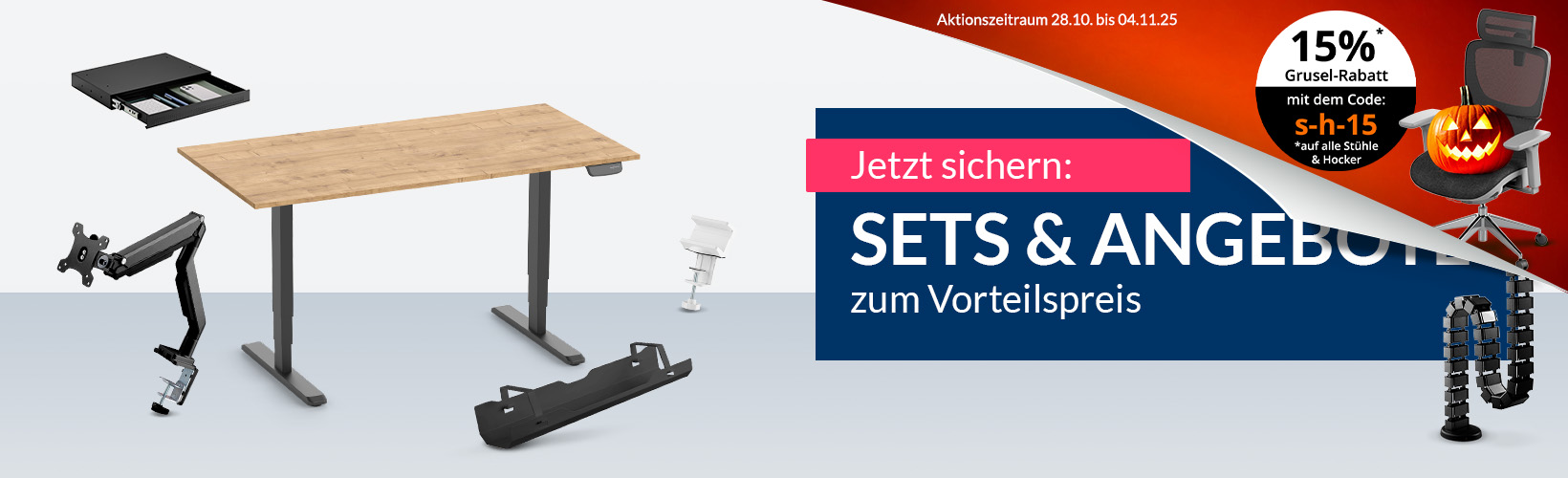 Das Aktions-Set für einen budgetschonenden Einstieg in ergonomisches Arbeiten: Unser FOKUS Schreibtisch kombiniert mit dem Bürodrehstuhl VITA mit hohem Preisvorteil im Vergleich zum Einzelkauf. In vielen Varianten erhältlich. Wählen Sie die für Sie passende Konfiguration.
