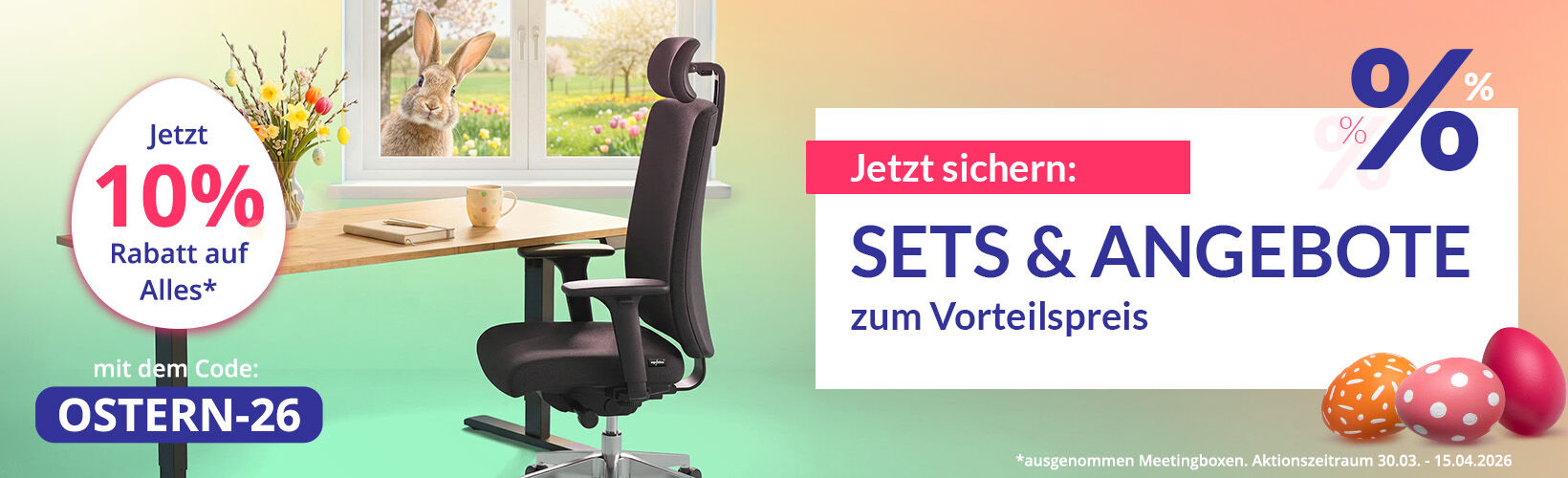 Das Aktions-Set für einen budgetschonenden Einstieg in ergonomisches Arbeiten: Unser FOKUS Schreibtisch kombiniert mit dem Bürodrehstuhl VITA mit hohem Preisvorteil im Vergleich zum Einzelkauf. In vielen Varianten erhältlich. Wählen Sie die für Sie passende Konfiguration.